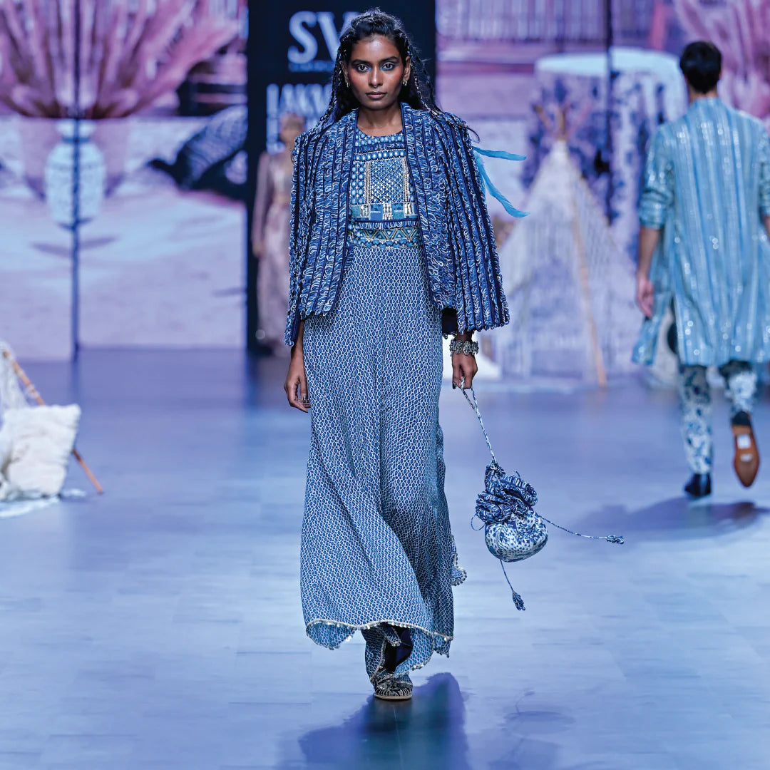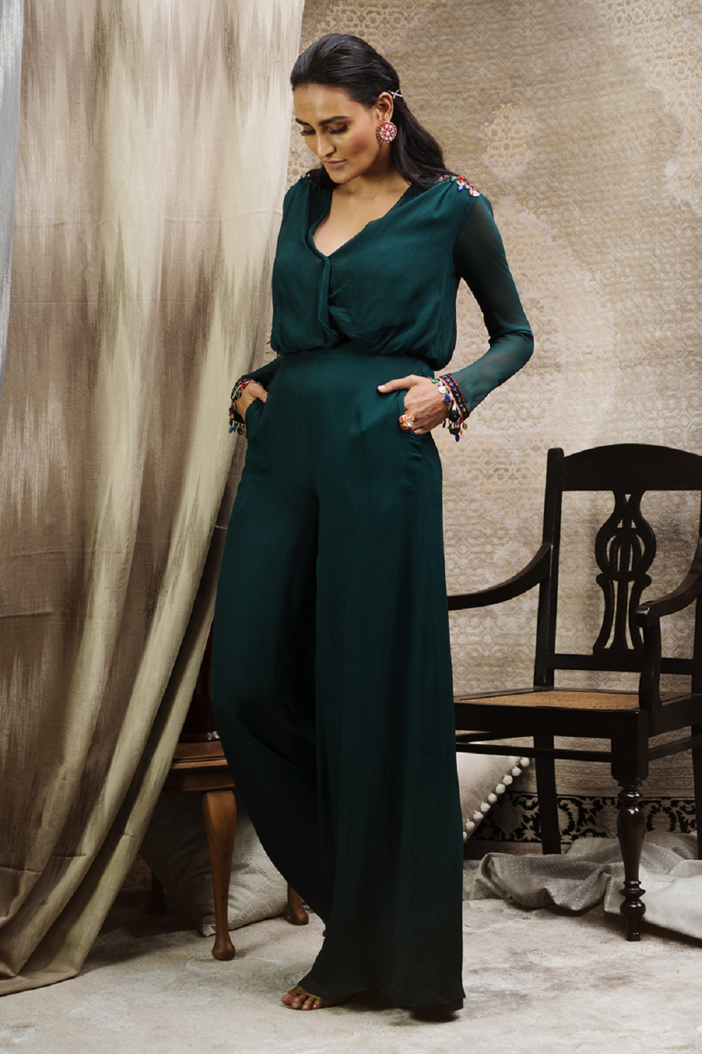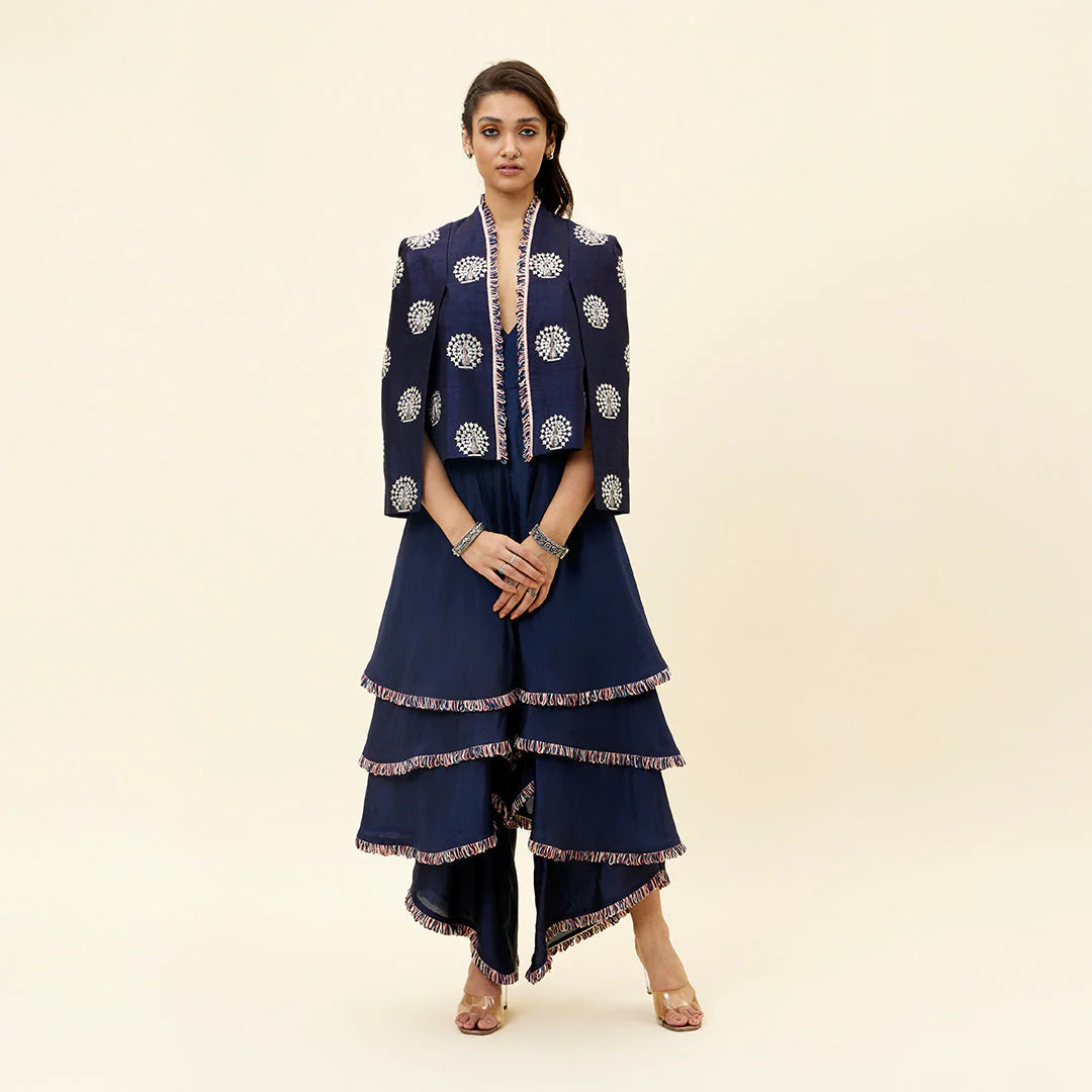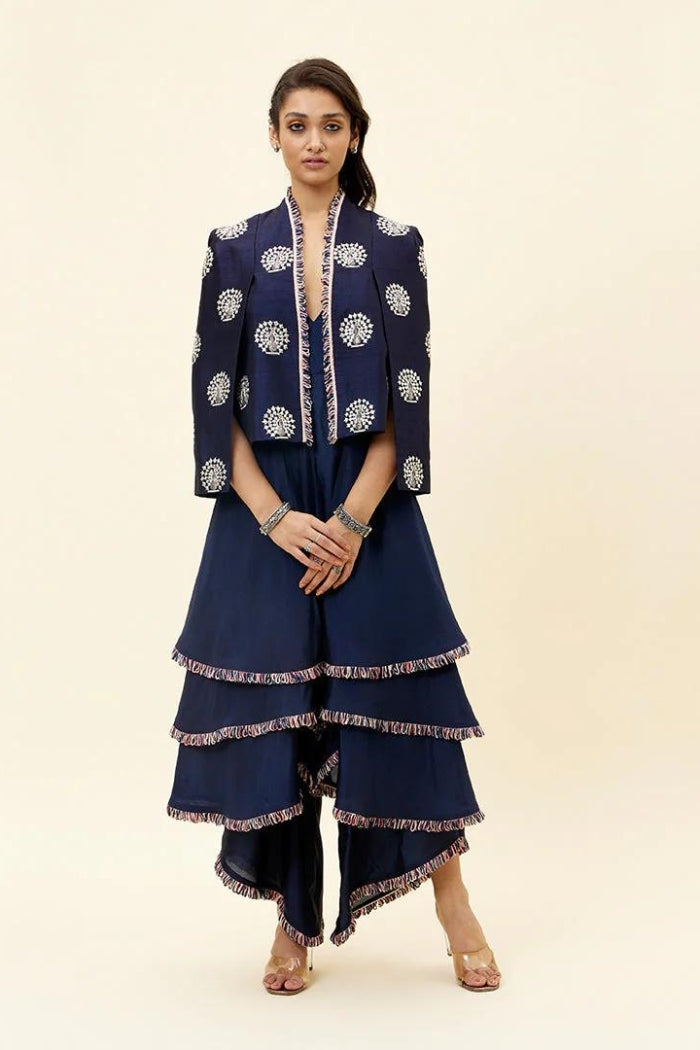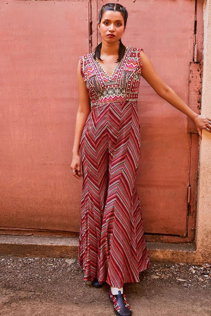 Safar merlot jaal patchwork jumpsuit with ombre cape