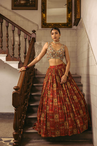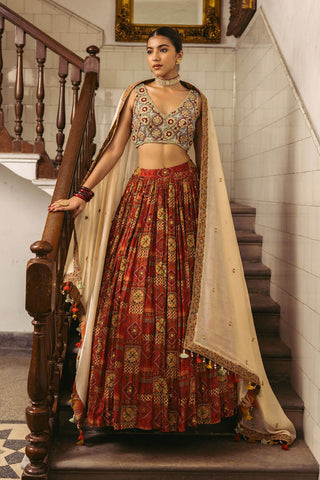 Heritage Lehenga & a Royal Classic Ivory Marodi Work Dupatta, Statement Hand Embroidered Blouse, Timeless Ensemble