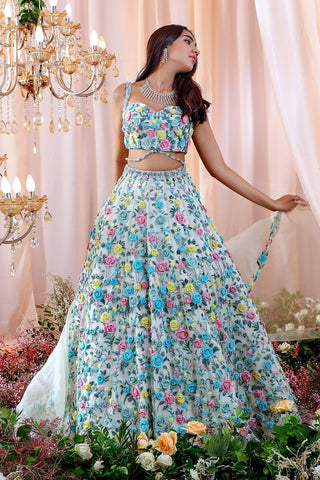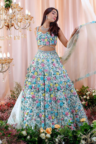 Jade Net Embroidered Lehenga, Embroidered Blouse With Embroidered Border Dupatta