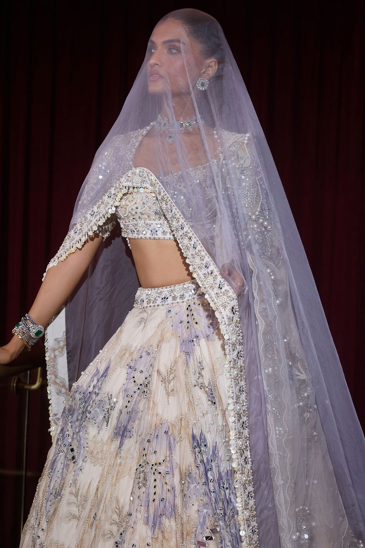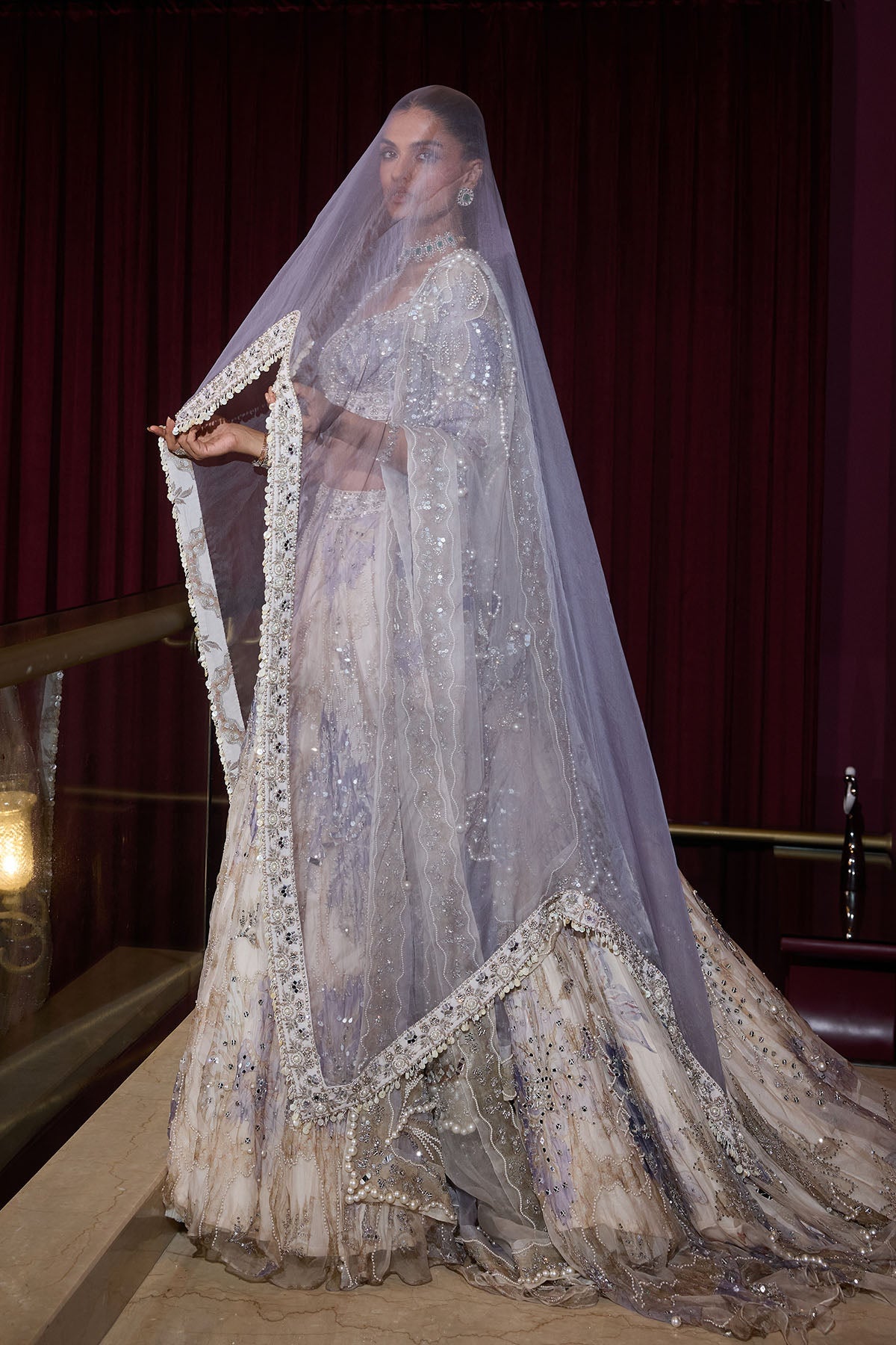 Heavy Hand Embroidered Trail Lehenga with Embroidered Dupatta, Heavy Odhani Paired With Veil