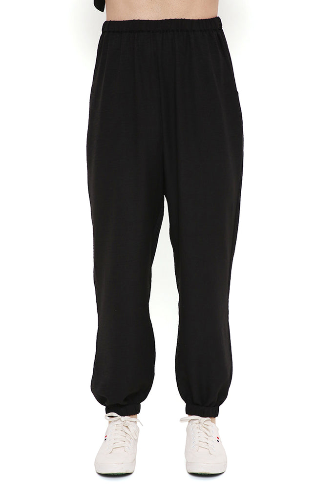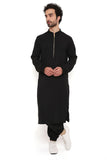 Black soft linen bomber kurta with jogger pant