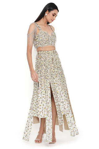 Off white embroidered choli with slit skirt
