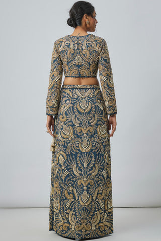 Navy blue embroidered choli with embroidered skirt