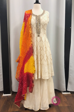 Multi color crepe printed forest v-neck pre-draped pant saree with blouse - ready to ship