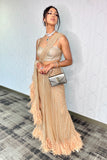 Nude Stone Embroidered Saree Gown Sale price$6,100