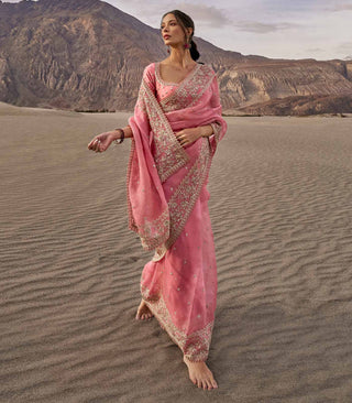 SET OF PIECES: 2: SAREE + UNSTITCHED BLOUSE WITH EMB ONLY ON SLEEVES