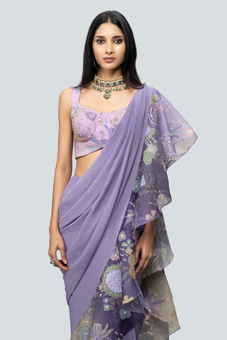 Sumire - lavender divergence silk appliquéd and embellished lehenga with blouse and cutwork organza dupatta