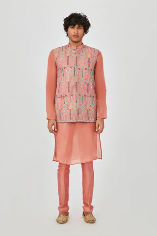 Cerise - peach divergence tissue appliquéd and embellished lehenga with blouse and tulle dupatta