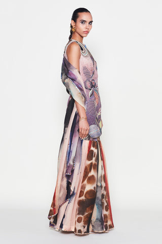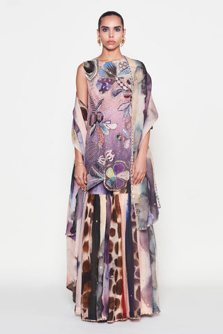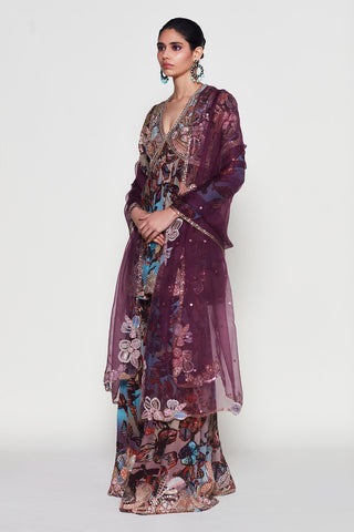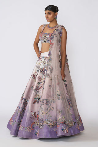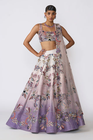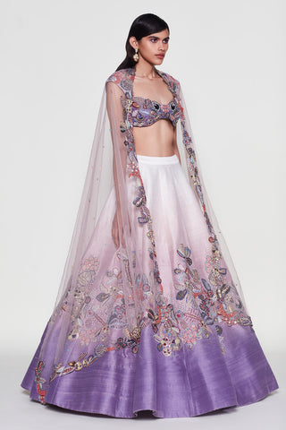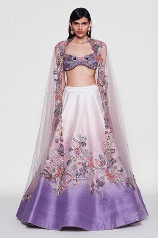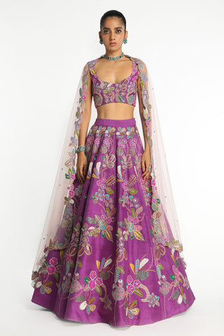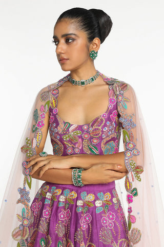 Calista - violet nadenka raw silk appliquéd and embellished lehenga with blouse and cutwork tulle dupatta