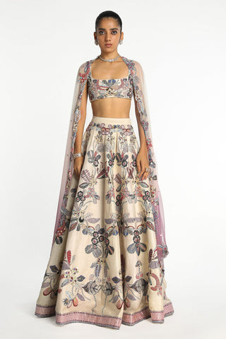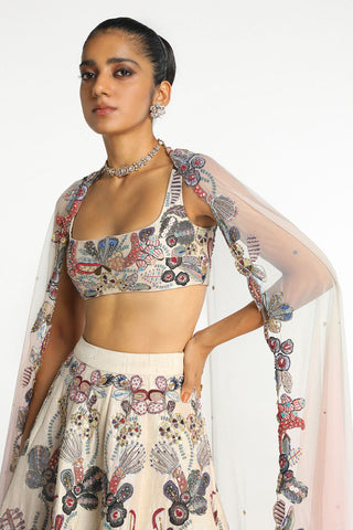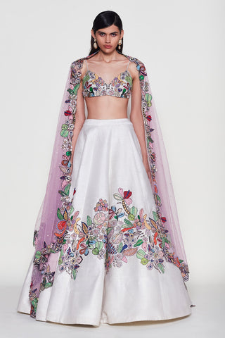 Bianca - ivory paper dolls raw silk appliquéd and embellished lehenga with blouse and cutwork tulle dupatta