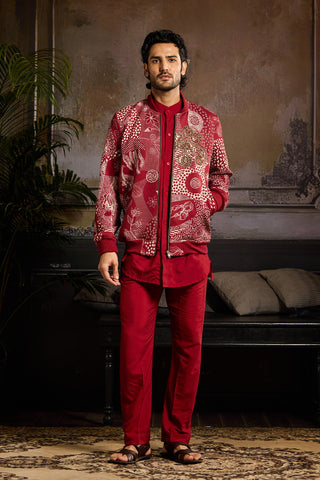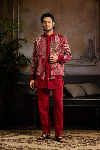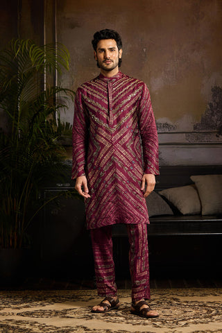 Fuschia print and highlighted corset blouse paired with pre-draped classic saree set