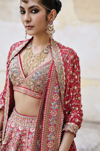 Adhyavi Embroidered Zardozi Silk Lehenga Set - Red Sale price$20,975