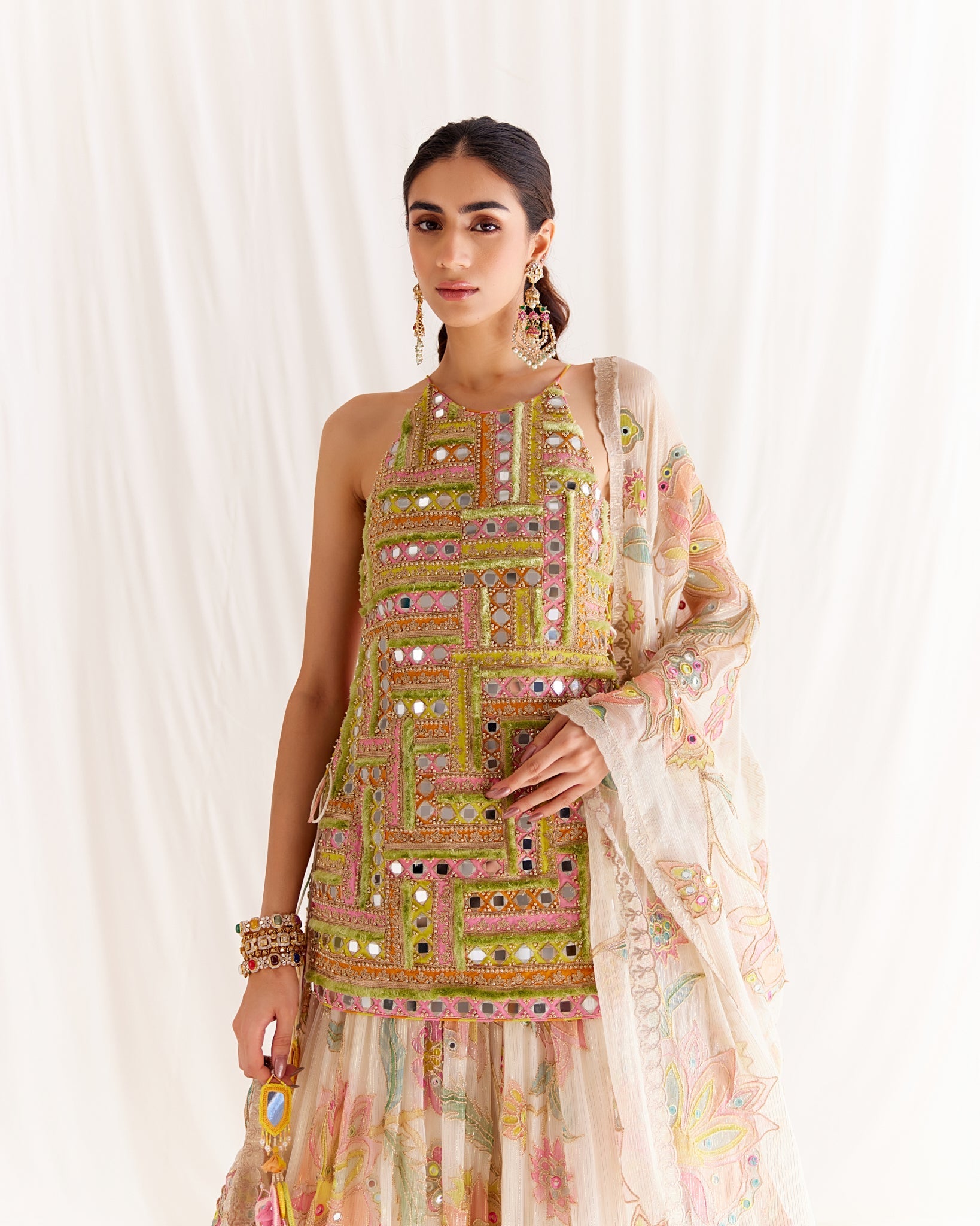 Patola tunic with marodiwork and marodiwork farshi salwar and dupatta