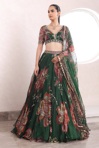 HAND EMBROIDERED SCOOP NECK BLOUSE , EMBROIDERED LEHENGA AND DUPPATA