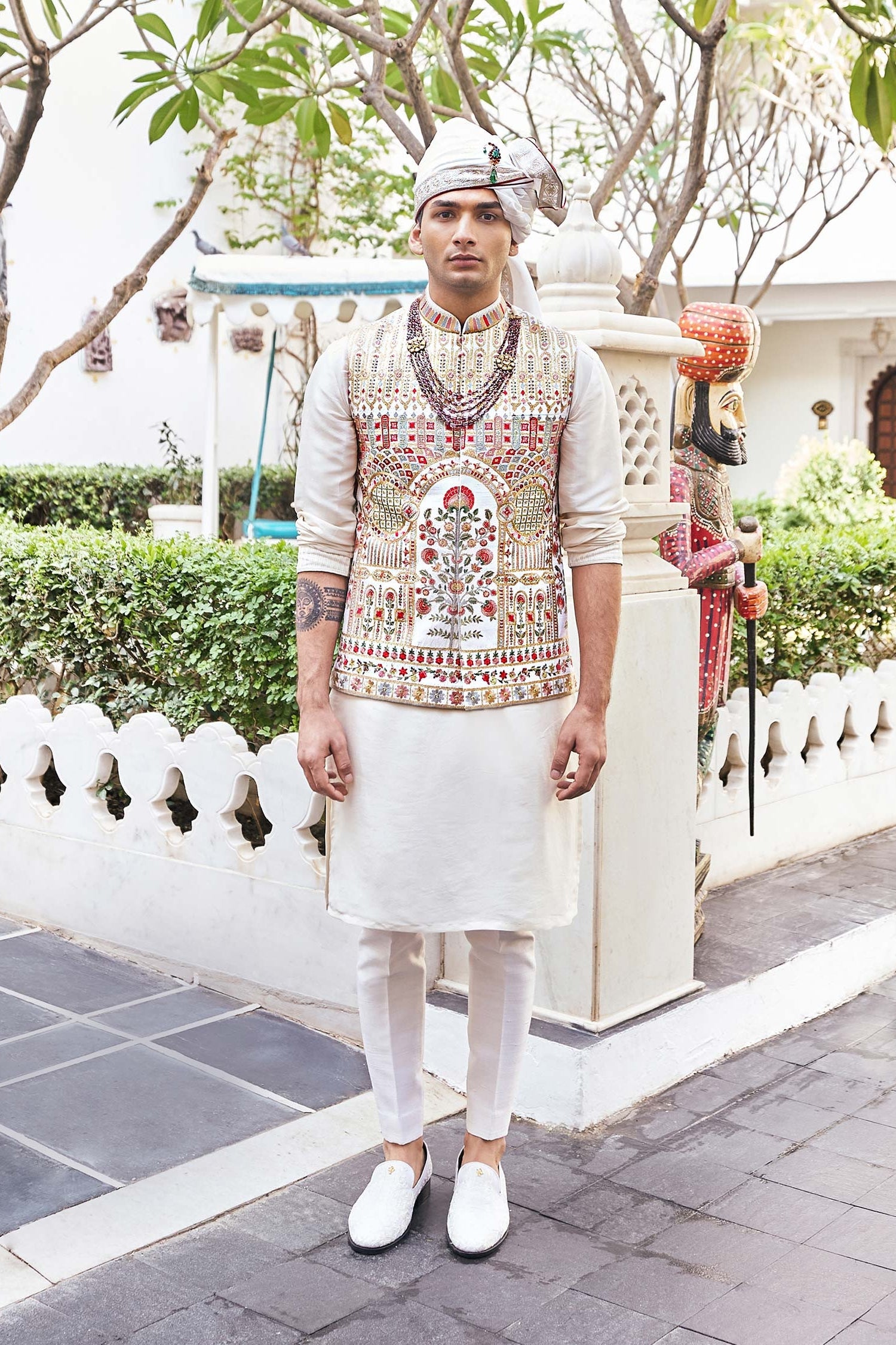 - OFF-WHITE RAW SILK BANDI EMBROIDERED