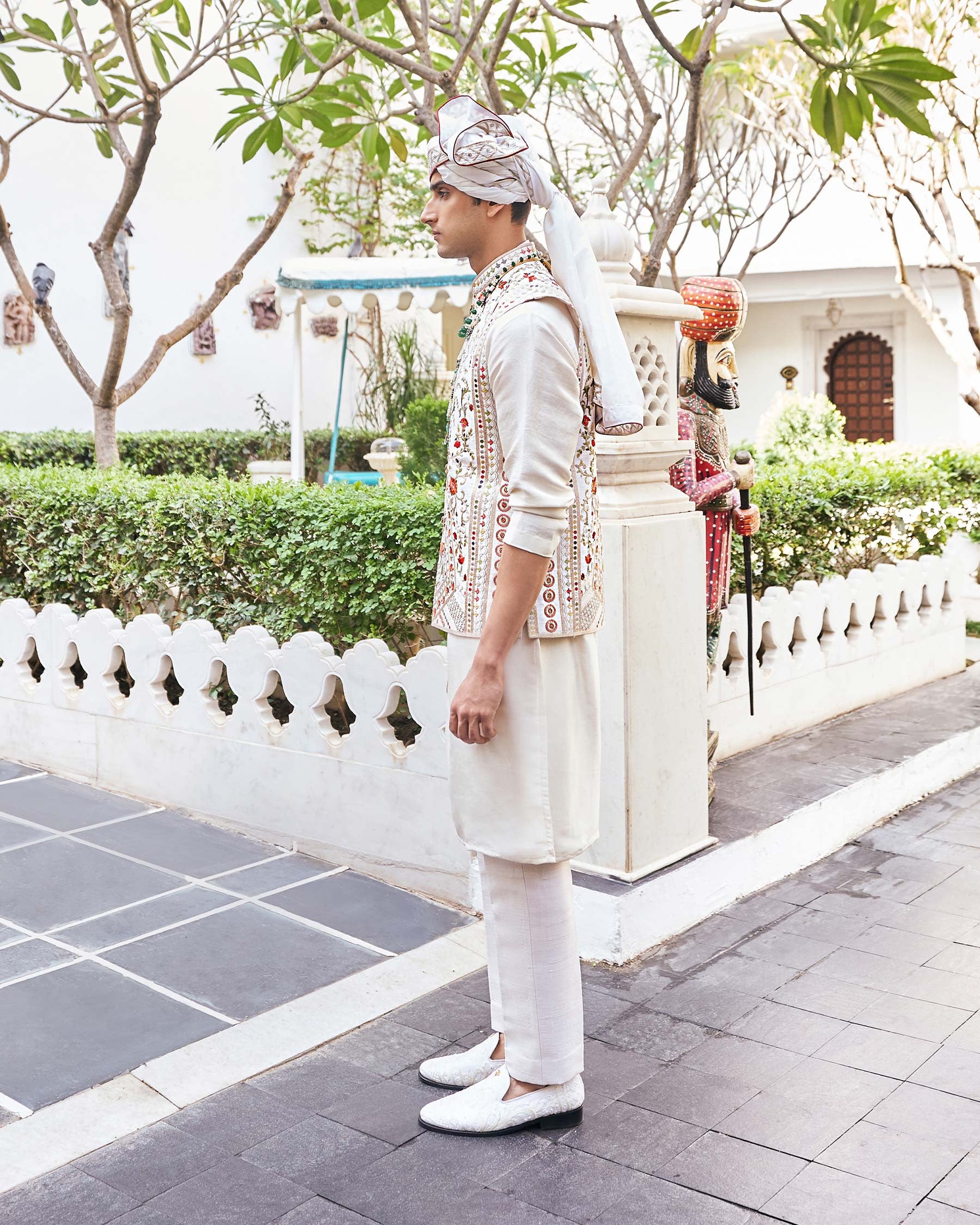 • TEAMED WITH A SILK KURTA AND TROUSERS.