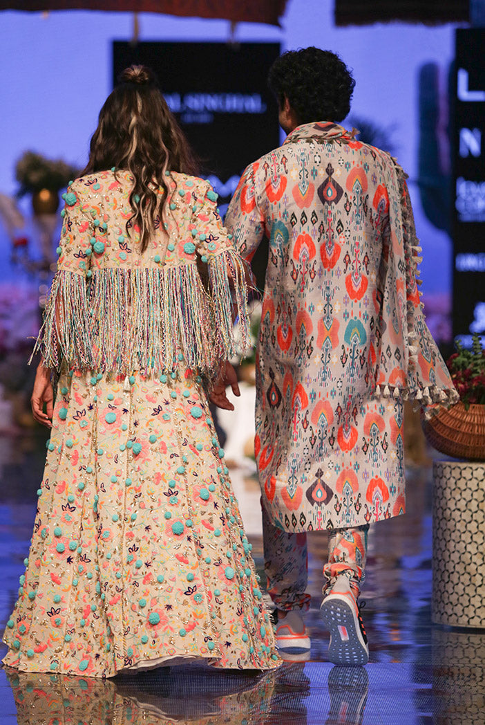 PLEASE NOTE: Since we are a made to measure brand and our dyeing process and embroidery is handcrafted, there may be slight variation in the colour and embroidery of the actual product. The color of the outfit might also slightly vary from what you see on your device's screen.