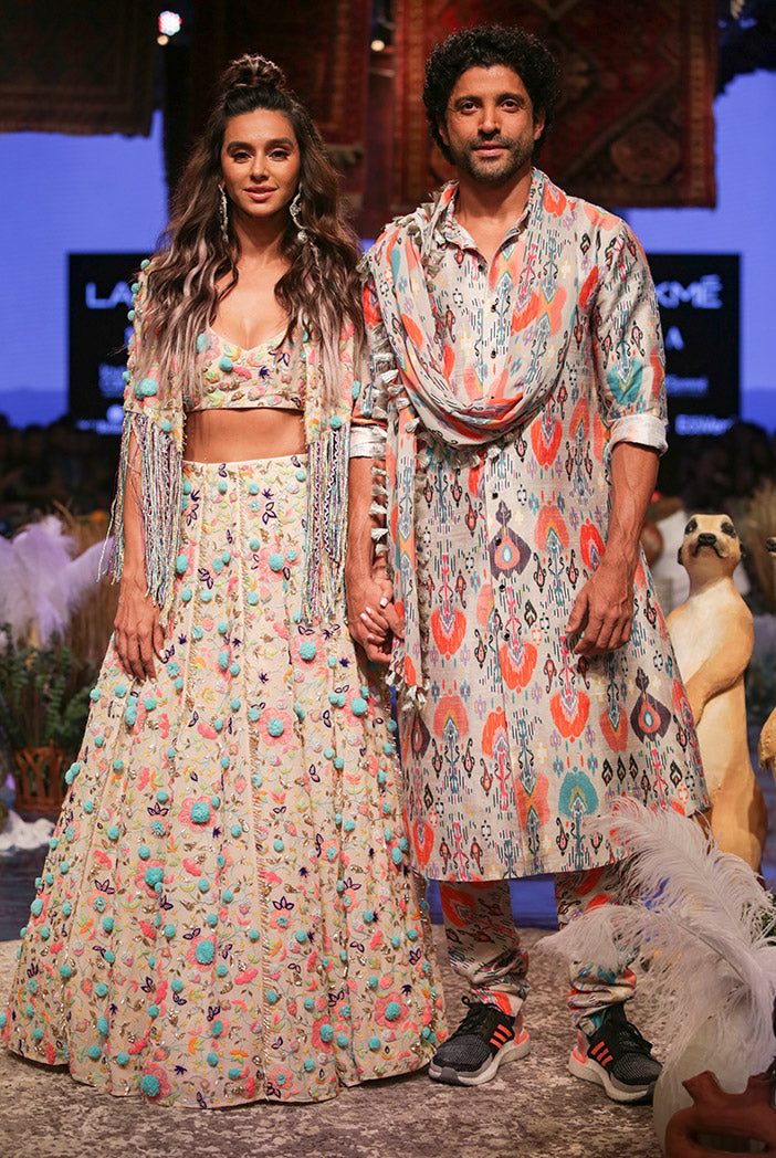 Farhan in stone printed dupion silk kurta and churidar with georgette dupatta