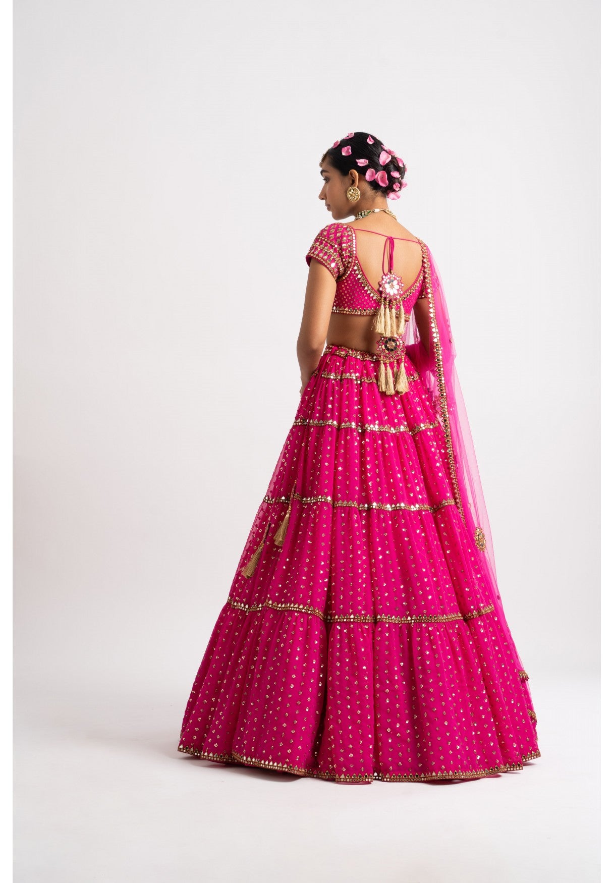 Fuschia multi tier lehenga set