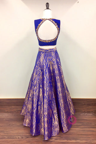 "aphrodite" embroidered skirt paired with a choli and a trail cape