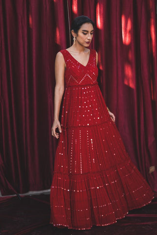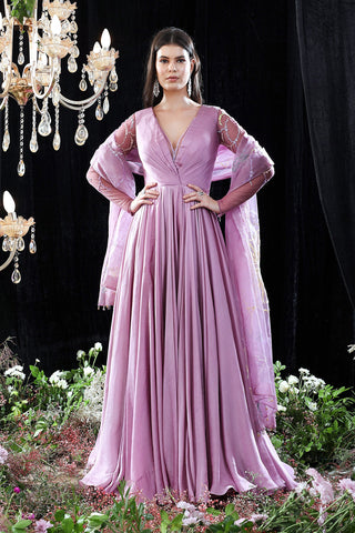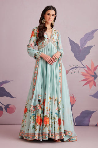 Nusrat off white embroidered yoke anarkali and churidar with dupatta
