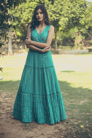 Roha off white anarkali buta embroidered raneem tunic with sharara