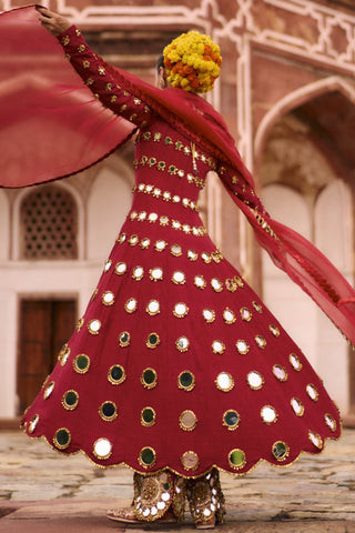 Zinat purple embroidered high low anarkali and churidar with dupatta