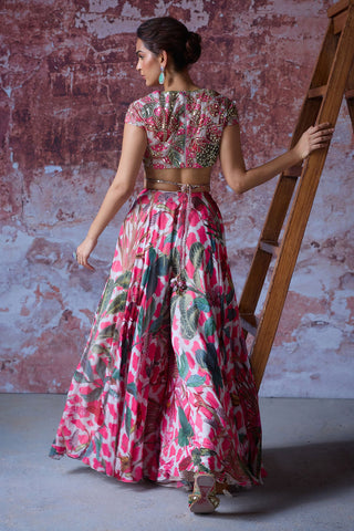 EMBROIDERED BLOUSE WITH FLARED PALAZZO PANTS , MIRRORED SLIM BELT AND EMBROIDERED DUPATTA