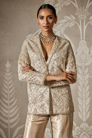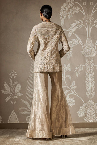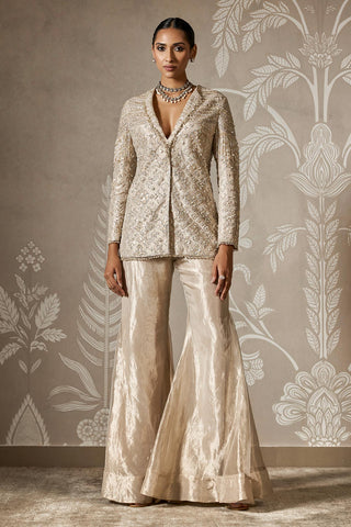 Allover Embroidered Tissue Jacket with Plain Tissue Flared Pants