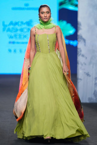 Corset Anarkali With Printed Dupatta