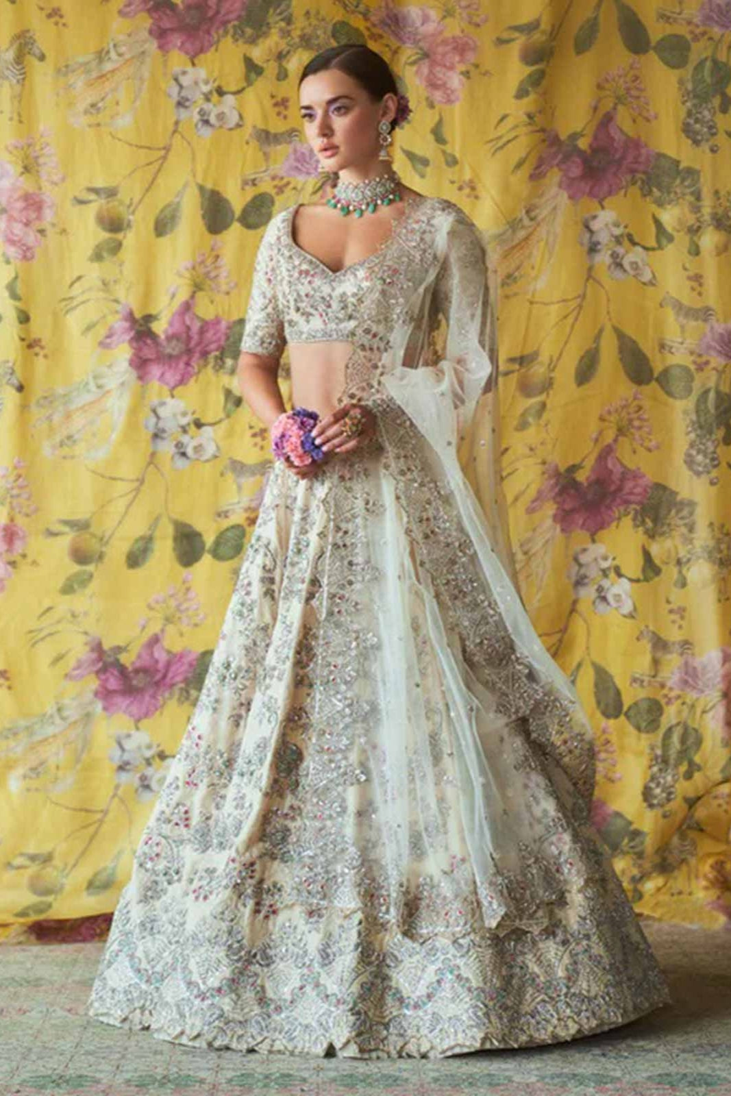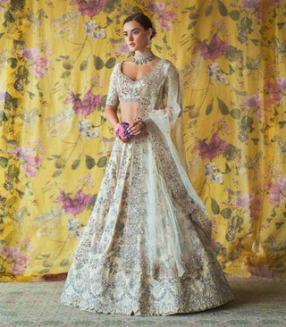 With hues straight from heaven our ivory 'Ayeleen' lehenga set is a boon from above. Made with organza in a ivory hue and embroidered work this lehenga set is sure to make you fall in love again.