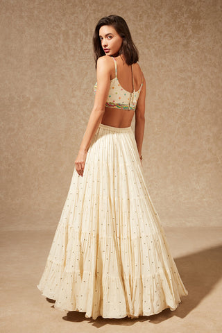 Tiered skirt with silk embroidered bustier and tulle dupatta