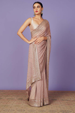 PINK CHIFFON 2 LINE SEQUENCE BORDER SAREE WITH BLOUSE