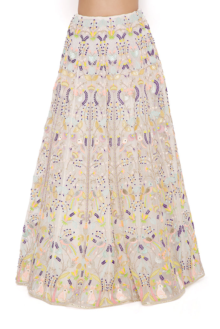 Off white organza embroidered choli and lehenga with mukaish organza dupatta