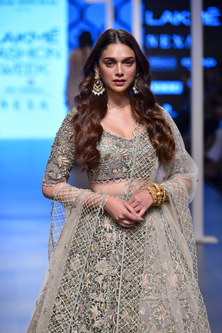 Aditi Rao in Hydari the Saira Mint Cutwork Lehenga