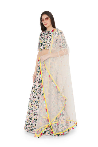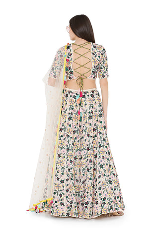 Amalfi euphoria print embroidered tie up back choli and lehenga