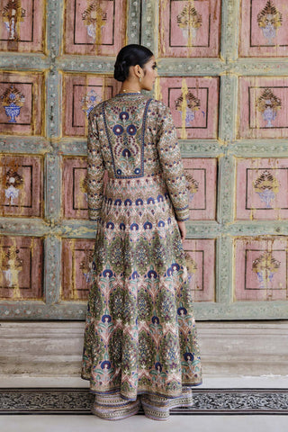 Green print & embroidered cape set