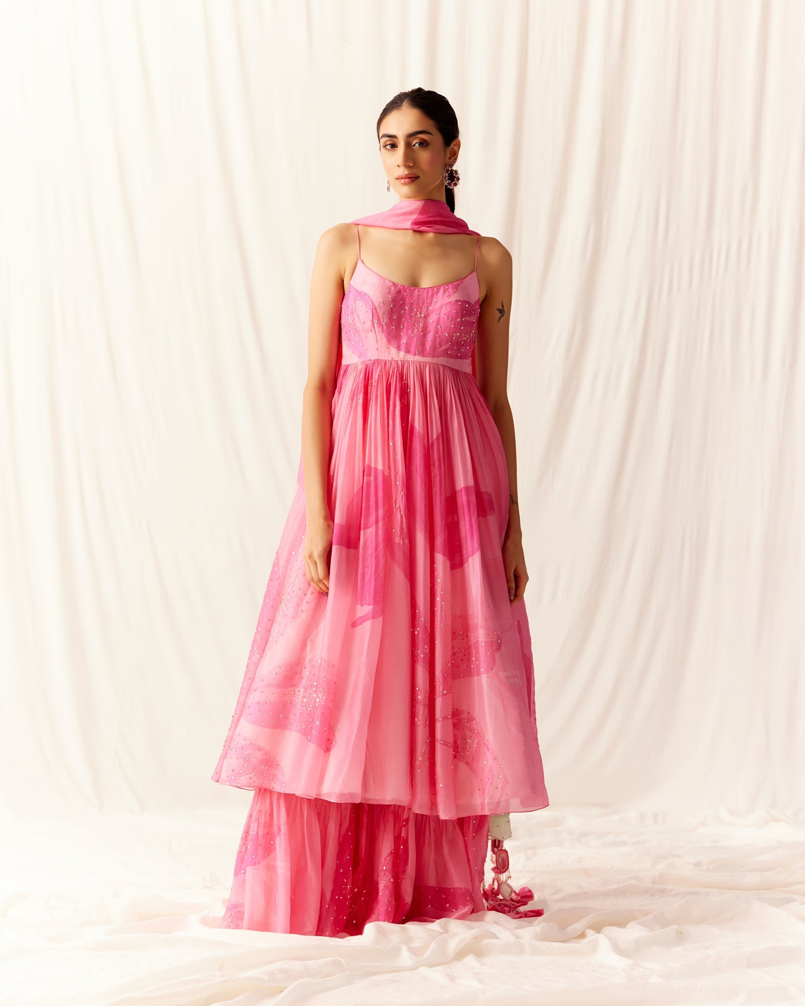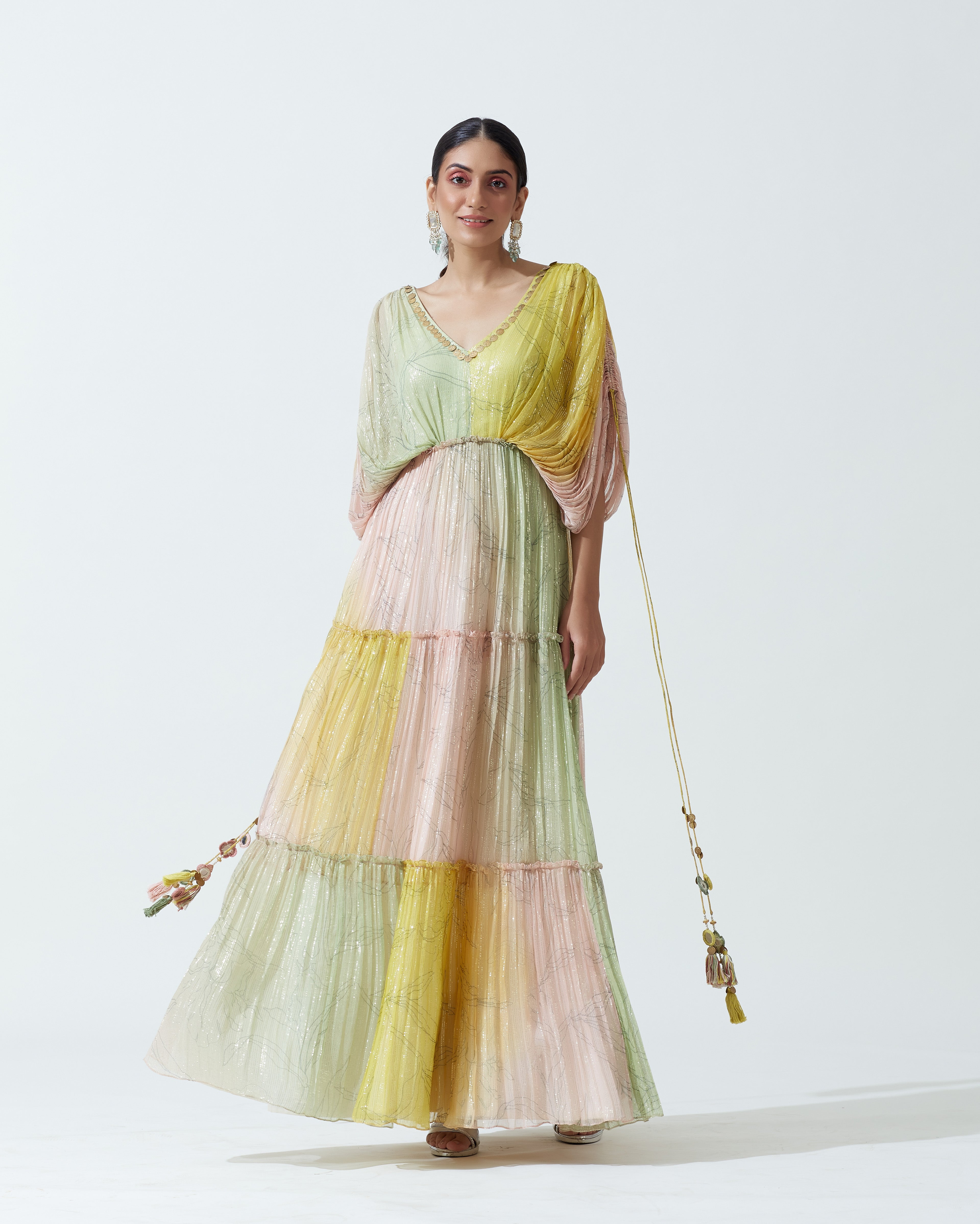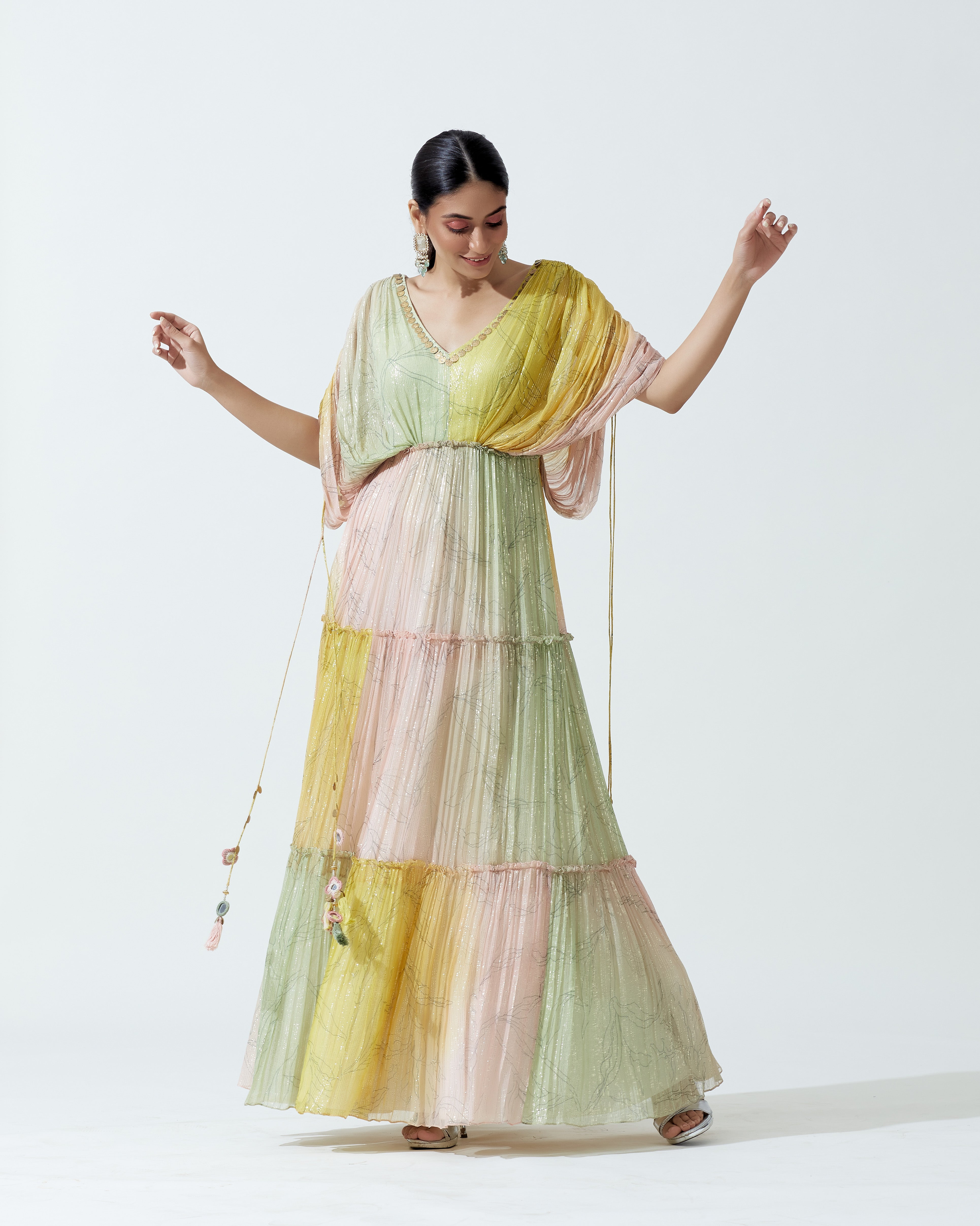 "arete" shimmer tulle sari gown