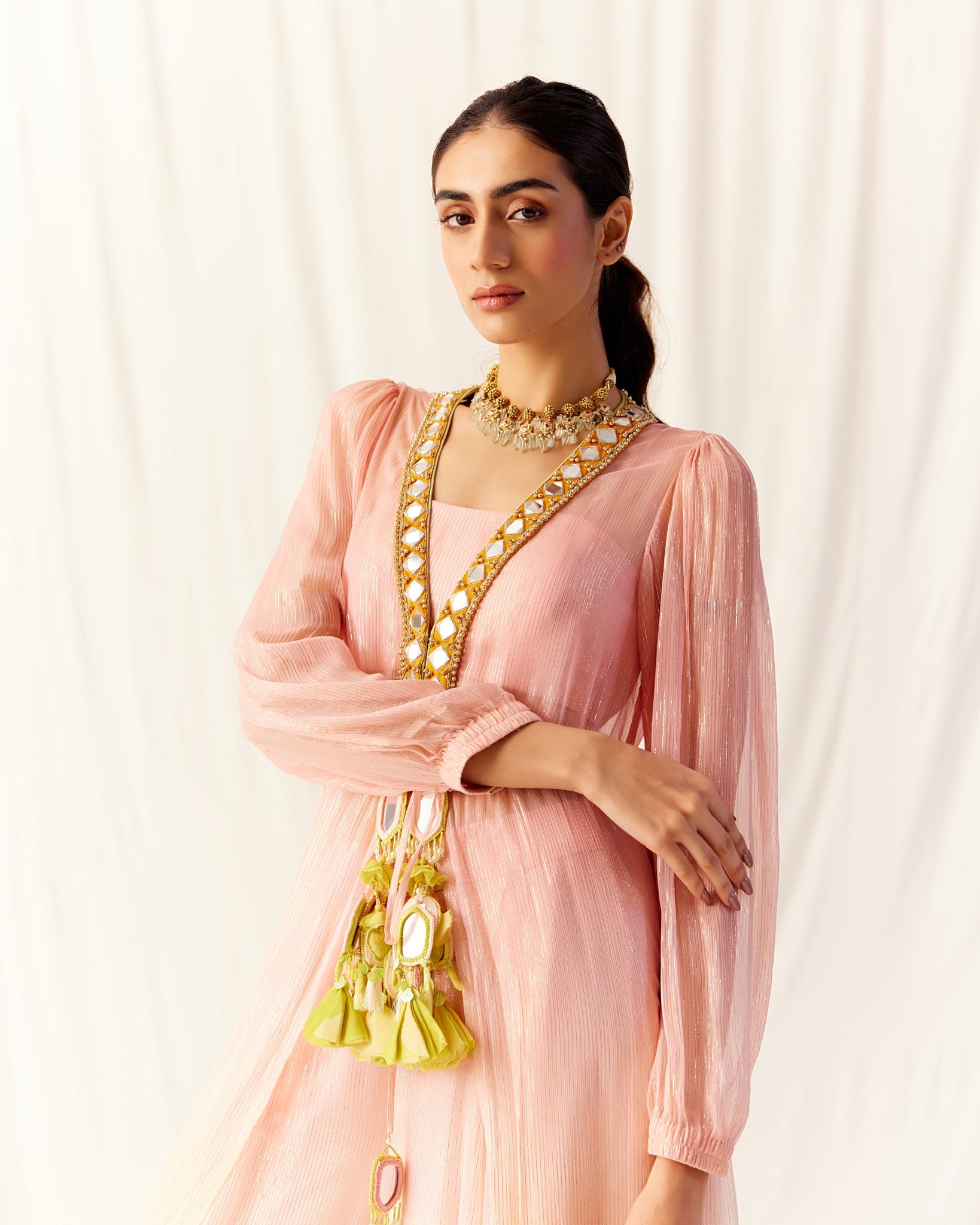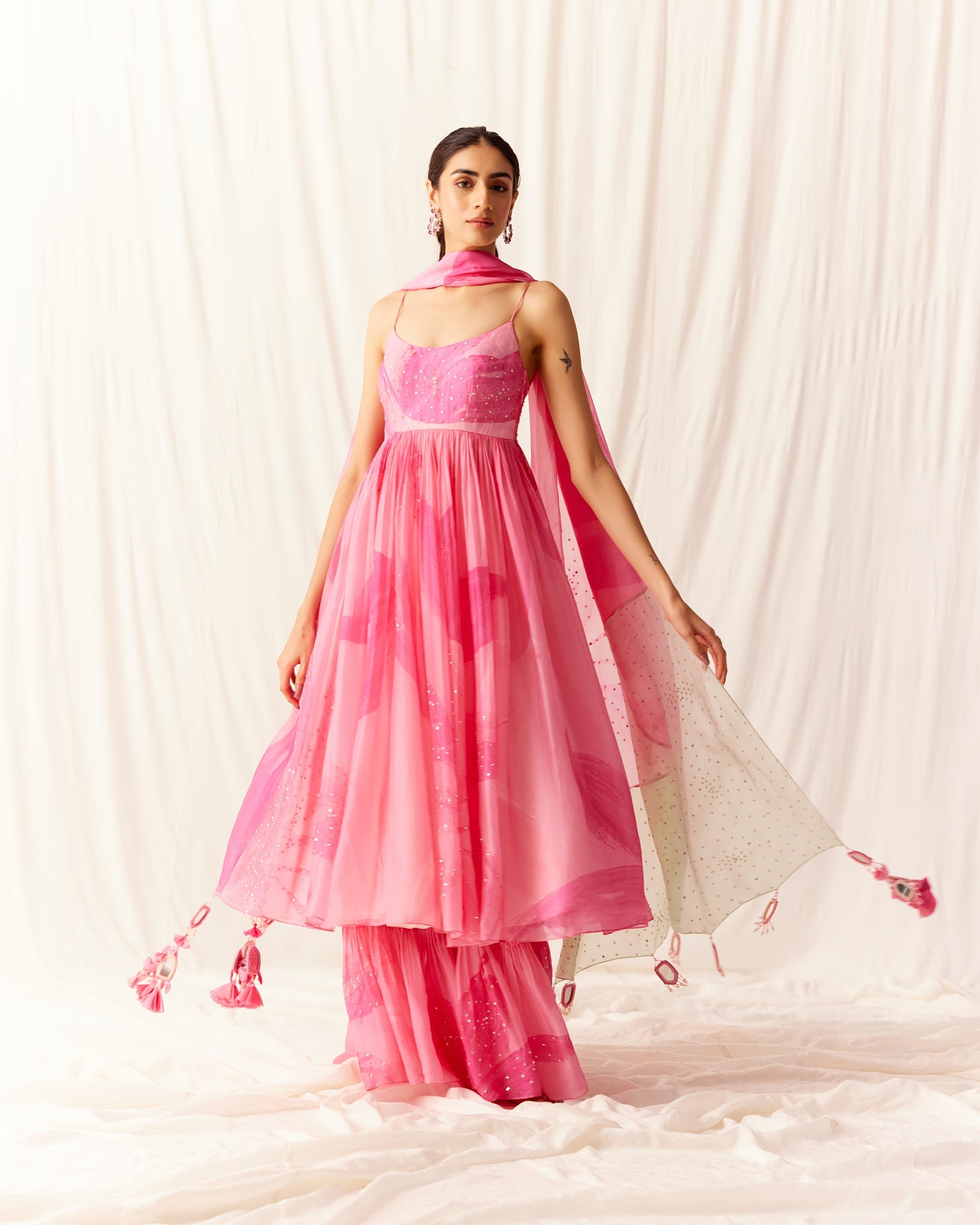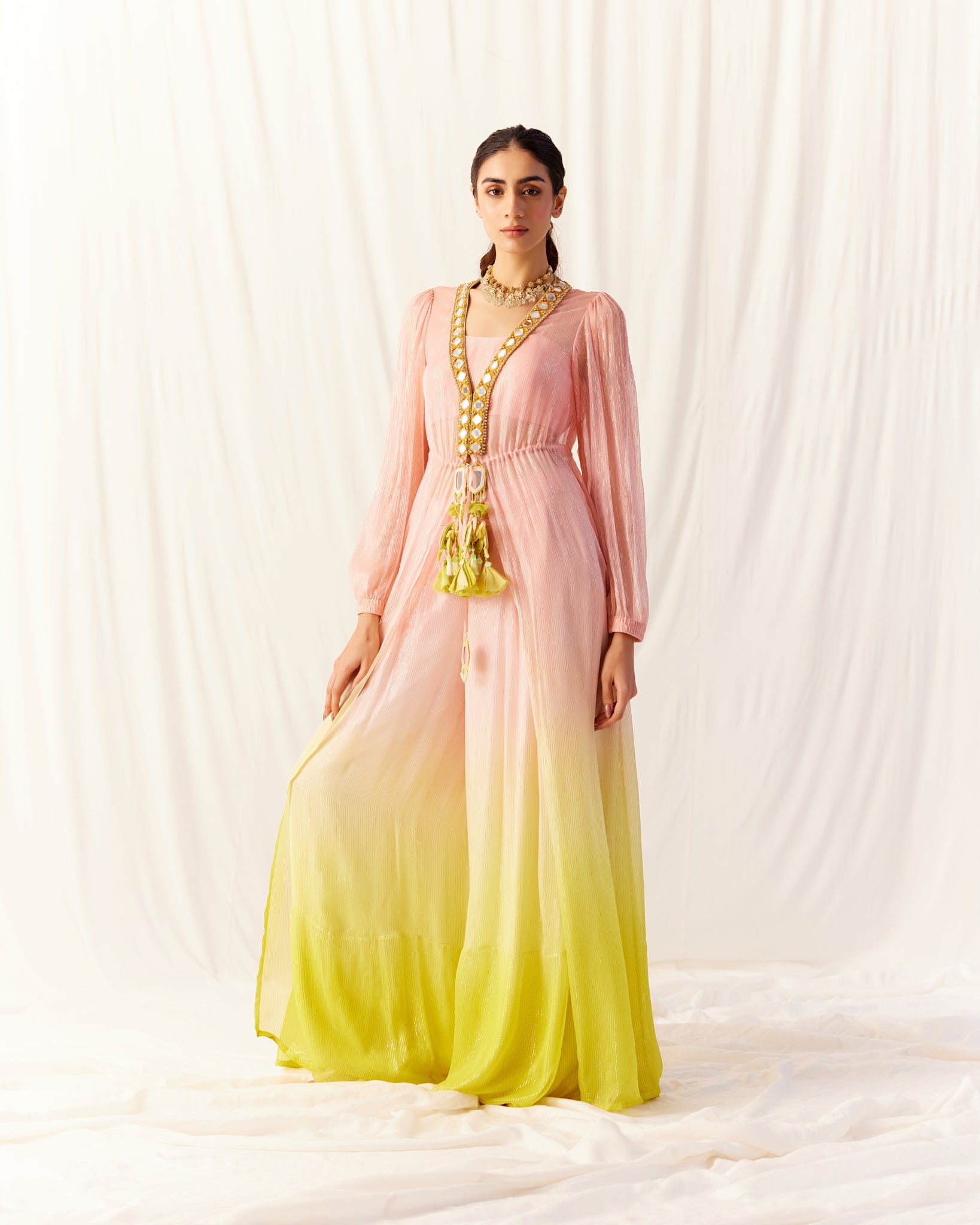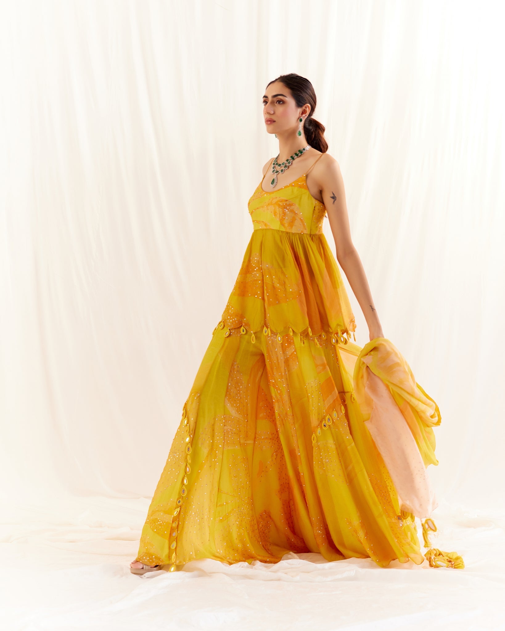 "arete" shimmer tulle sari gown