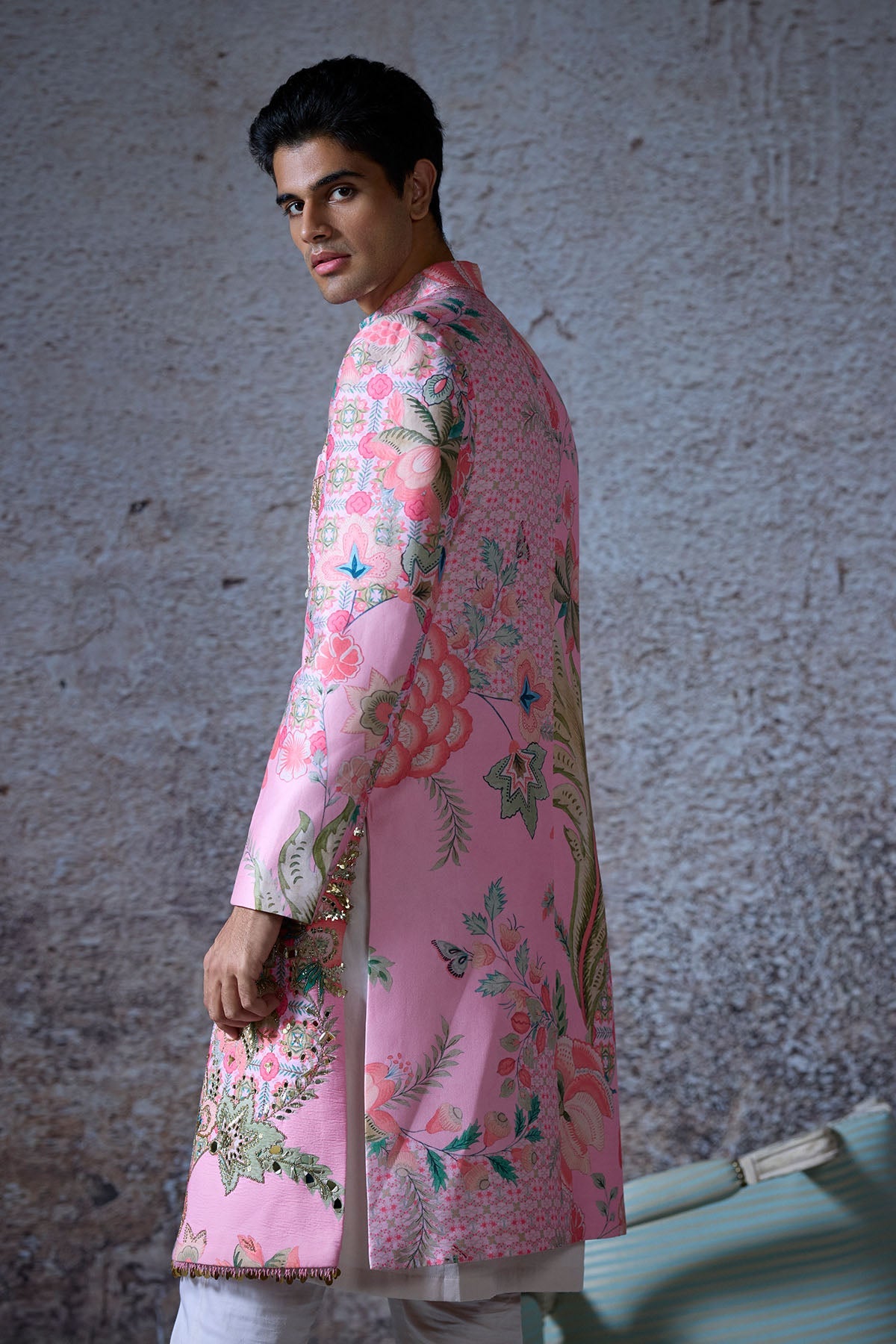 Embroidered Pintucks Sherwani Set
