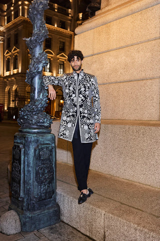 Black & silver sherwani set