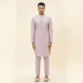 Lilac emb jaal sherwani with lilac pants