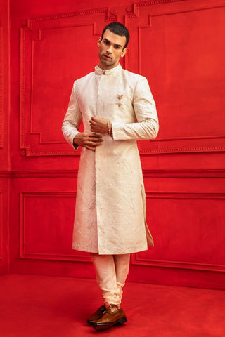 Nude floral sherwani set
