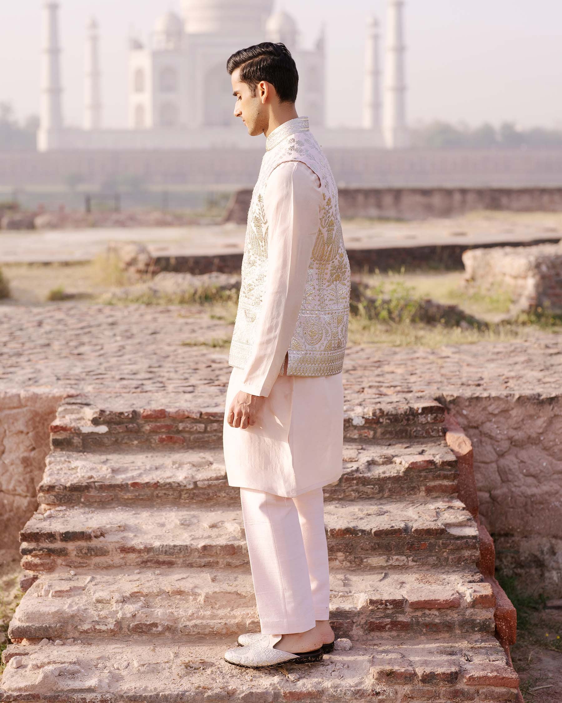 Nude pearl sherwani set