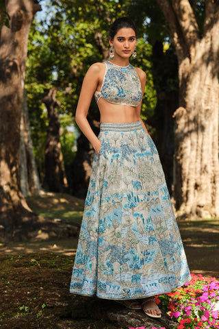 Malaika bustier and and sachi lehenga skirt and and scallop dupatta