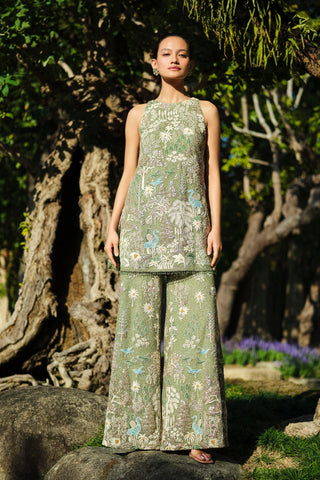 Tissue mirrorwork panelled tunic. and tissue palazzos
