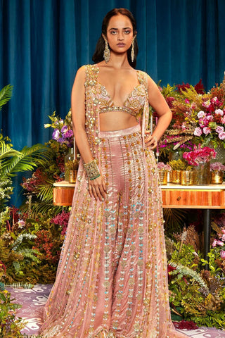 Tissue mirror work hi neck tunic and bandeau and tissue mirror work palazzos