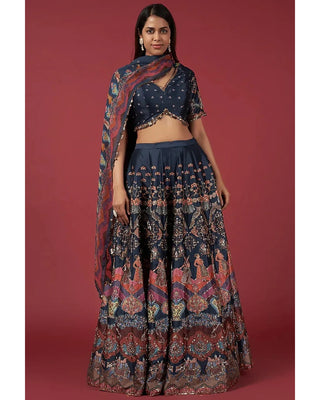 Navy blue taffeta embroidered lehenga set