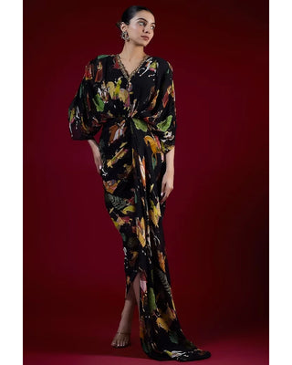 Black printed drape dress