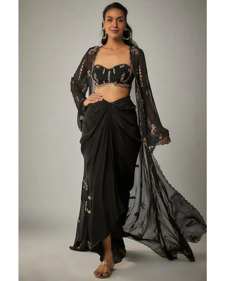 Black drape skirt and embroidered cape set